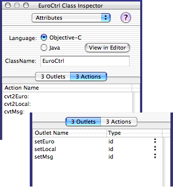 Siamo adesso in XCode. L'applicazione che stiamo facendo è un classico esempio in cui il paradigma M-V-C perde un po' di significato, in quanto la classe modello brilla per la sua assenza (fossimo in SmallTalk, avrei definito una classe Euro come modello, con metodi per conversioni da e verso valute locali, ma sarebbe tirare fuori sangue da una rapa).