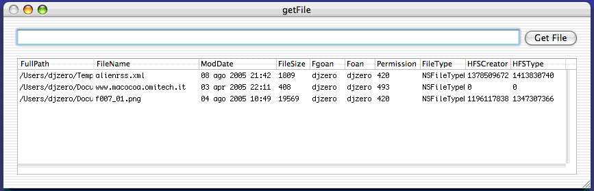 La cosa buffa e divertente è che non funziona. O meglio, funziona, ma bisogna aiutare la finestra. Infatti, nessuno ha detto alla NSTableView che i dati sono cambiati, e quindi il contenuto della finestra non viene aggiornato. Non appena sposto o ridimensiono la finestra, ecco che compare il nuovo file aggiunto... .