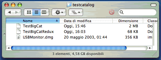 L'applicazione si chiama CDCat perché, nell'idea iniziale, intende catalogare CD. In realtà, fino a questo momento, la finestra con la NSOutlineView è in grado di conservare informazioni su qualsiasi file e cartella.