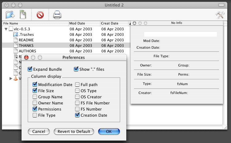 Parto dall'aggiornamento dei Developer Tools del Dicembre 2002. Più che le funzioni aggiunte, le possibilità esotiche di compilazione e quant'altro, mi interessa verificare la documentazione in linea. In effetti vedo che ci sono molte informazioni aggiuntive (magari erano anche nei rilasci precedenti, ma le viste solo ora...). Comincio quindi da lì, per scoprire finalmente che, tra le informazioni associate ad un file, compare anche la data di creazione (e non solo quella di ultima modifica). È giocoforza aggiungere anche questa informazione a tutto il mio castello di oggetti ed interfaccia.