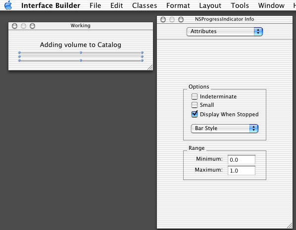 In primo luogo, occorre modificare la finestra. Sull'interfaccia, con IB, si tratta solo di spuntare la voce intedeterminate dalle caratteristiche della barra. Con questa operazione diventano significative due altre caratteristiche, il range minimo ed il range massimo, che lascio rispettivamente a zero ed uno.