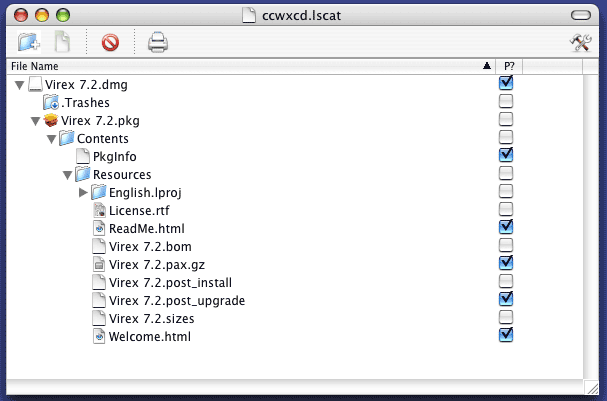 Arrivo ora al nocciolo del problema. Così com'è, l'applicazione funziona, ma nella nuovo colonna è mostrato Zero oppure Uno a seconda dell'inizializzazione (sempre Uno, perché ho deciso di inizializzare a Vero la nuova variabile d'istanza). Devo fare in modo che la colonna non sia visualizzata come testo, ma come un pulsante di spunta. Ho già fatto (copiato) qualcosa di simile quando ho aggiunto l'icona al nome del file, costruendo una nuova classe ImageAndTextCell. All'inizio, ho provato a fare una cosa simile, utilizzando una cella del tipo NSButtonCell. Ho installato la cella al posto della cella standard alla costruzione della finestra (metodo windowControllerDidLoadNib: di CatalogDoc) :