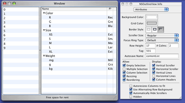 Il problema di utilizzare una unica sorgente dati per visualizzare elementi all'interno di due distinte outlineView (distinte anche per come è organizzato il contenuto) sta nel riconoscere univocamente la outlineView che invoca i metodi. Il meccanismo è molto semplice: attribuisco alle due outlineView un codice di tag differente. Occorre quindi usare Interface Builder per assegnare due valori di tag differenti alle due outlineView. Poi, all'interno dei metodi, la prima istruzione eseguita discrimina proprio questo codice.