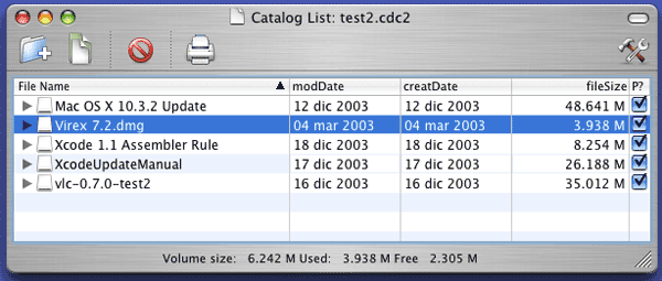 C'è da notare una cosa: poiché la sorgente di dati è unica, l'ordinamento imposto dalla finestra ListWinCtl si riflette anche sulla finestra CoverWinCtl. C'è una significativa eccezione, che è la lista dei Volumi; la finestra CoverWinCtl presenta (nella tableView) i volumi nell'ordine in cui sono stati inseriti all'interno del documento. In effetti, mentre l'elenco dei file è riordinato in loco dal metodo sortFileList:direction:, il vettore startPoint non è mai rimpiazzato da una sua versione ordinata. In questo modo è possibile, per la visualizzazione nella finestra CoverWinCtl, rintracciare il volume utilizzando semplicemente il metodo objectAtIndex:.