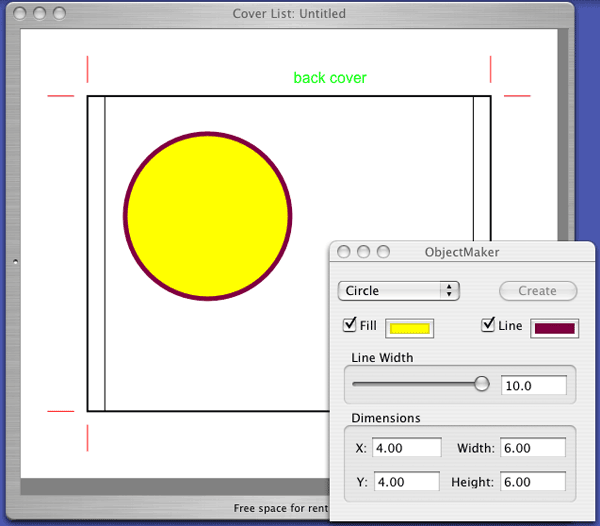 Il metodo più naturale per disegnare elementi all'interno della coverView è ovviamente quello di utilizzare il mouse e tracciare l'elemento che interessa, come ogni buona interfaccia grafica deve fare. Tuttavia, mi pare che il problema non sia particolarmente semplice. Comincio allora col preparare una finestra ausiliaria che consenta di aggiungere elementi grafici alla coverView stabilendo per questi elementi i parametri di inizializzazione richiesti.