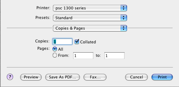 I parametri della stampa si impostano invece con il pannello che esce quando si seleziona la voce di menu Stampa o Print; tra i parametri, il numero di copie, caratteri specifici della stampante utilizzata (qualità di stampa, ad esempio), l'eventuale produzione di un file PDF al posto della stampa su carta, eccetera.