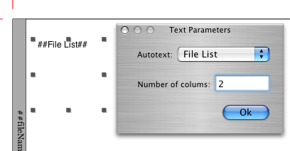In questa finestra ripristino il menu del testo automatico (sotto forma di menu pop up, ed aggiungo un campo di testo dove impostare il numero delle colonne.