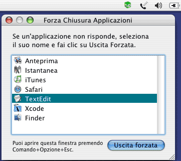 Per uscire dall'applicazione, c'è il comando Quit, che esegue un brutale uscita di scena: