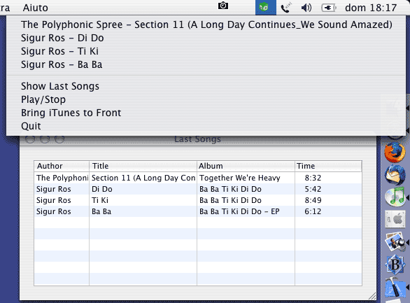 Questo dice che l'applicazione funziona solo in background. Così facendo, però, quando si seleziona la voce Show Last Songs, la finestra corrispondente non c'è verso di portarla davanti a tutte le altre, ma occorre, una volta visibile, selezionarla esplicitamente.