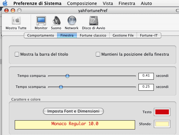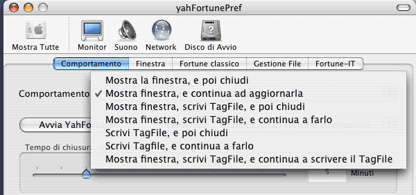 - Generazione di un fortune, presentazione dello stesso in una finestra, e tutto finisce lì. è la modalità classica: si mette l'applicazione in avvio automatico al login, ed ogni volta che accende il Mac, eccovi una frase memorabile.