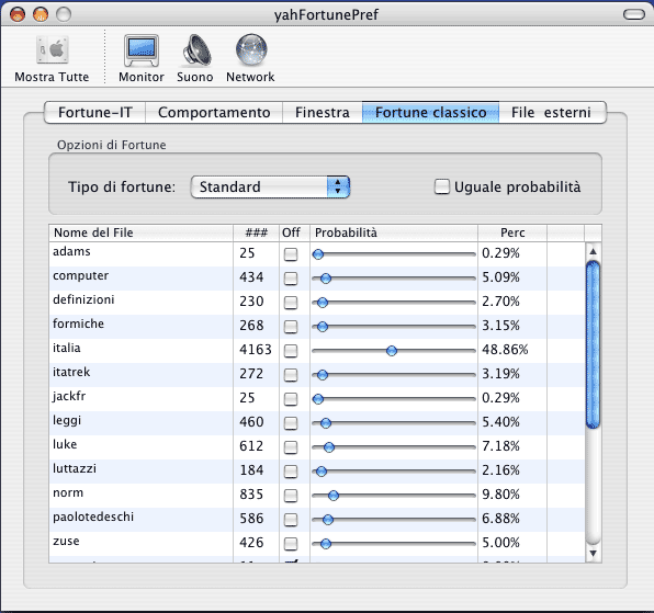 Per finire, manca il metodo di yahFortunePref che scatena il tutto ad ogni modifica: è l'action associata ad una scelta del menu pop-up e al pulsante di spunta sulle probabilità: