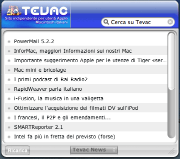 Qualche tempo fa mi sono trovato a realizzare un widget (per accedere ai feed RRS del mai abbastanza lodato sito Tevac). Non parlo qui del widget in sé, ma di come ha realizzato un plugin in Cocoa per effettuare alcune operazioni all'interno del widget stesso. La cosa si è rivelata piuttosto semplice, anche se piuttosto semplice era il compito da svolgere.